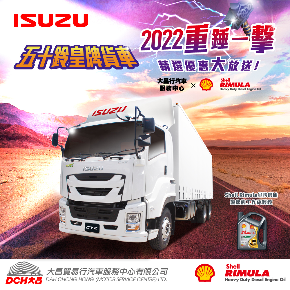 重錘一擊,年末大放送?!大昌行汽車服務中心 X Shell Rimula金牌機油,特別為五十鈴皇牌貨車車主,呈獻一系列精選優惠?!
